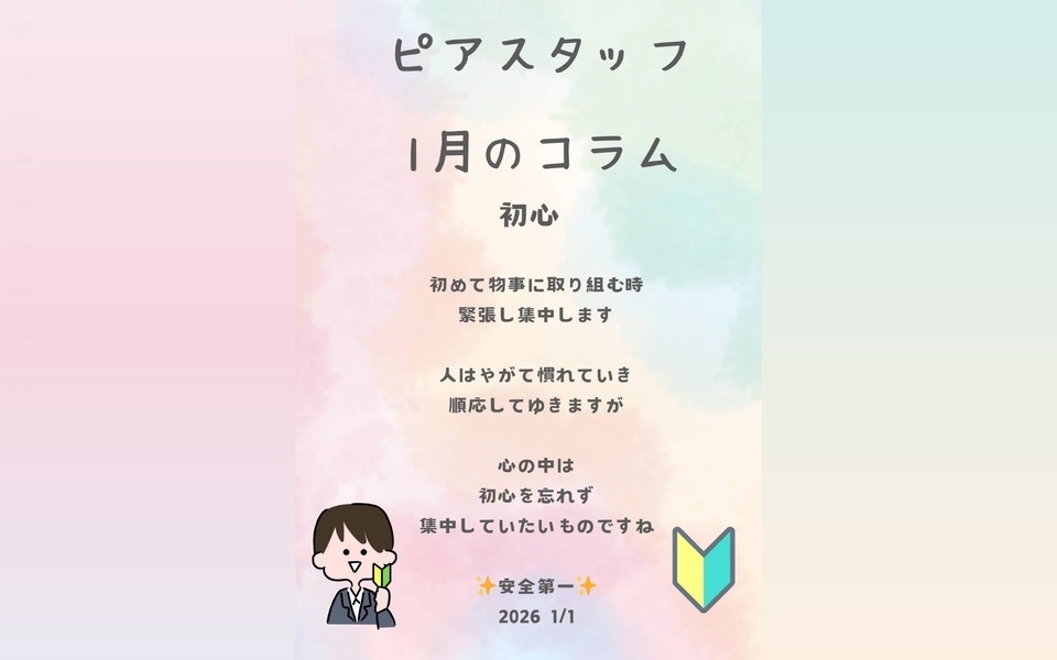今月のピアスタッフのコラムは 「初心」です。