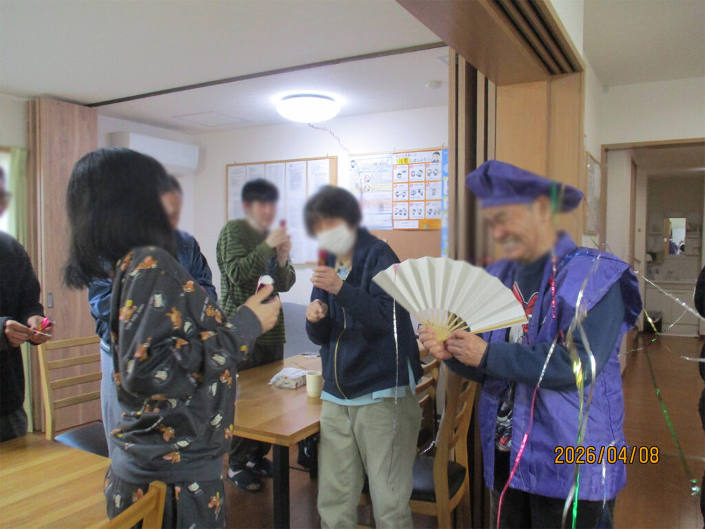 利用者みんなそれぞれ参加し、祝いの食事・ケーキで笑顔があふれていました。
