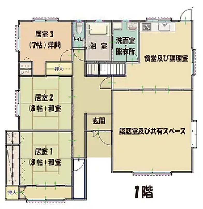 ライフサポート吉野の共同スペース食堂と談話室です。
